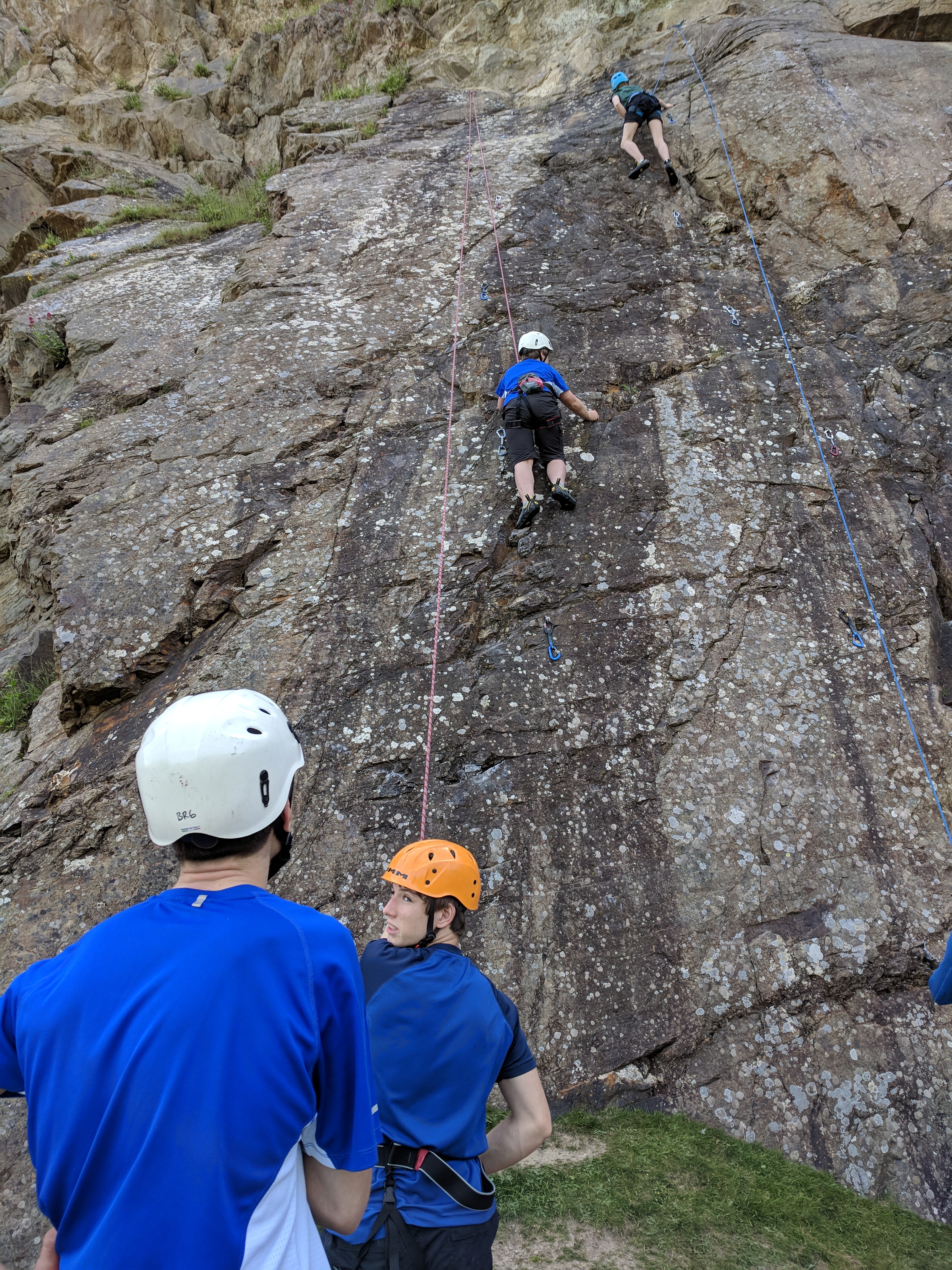 BMC outdoor sport climbing for young people. This was the first time climbing outside for these guys. As well as a fun day out sport climbing the course covered all the key safety skills for both the participants and the parents.