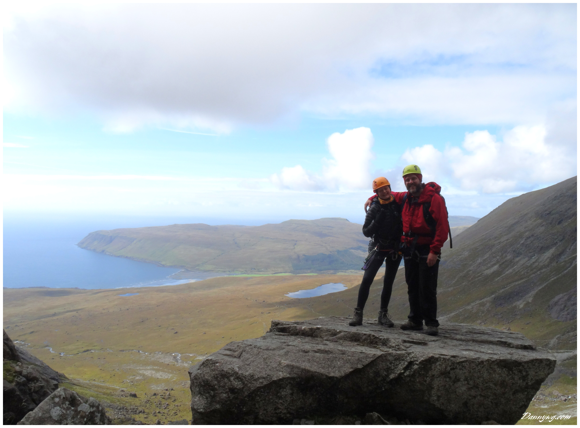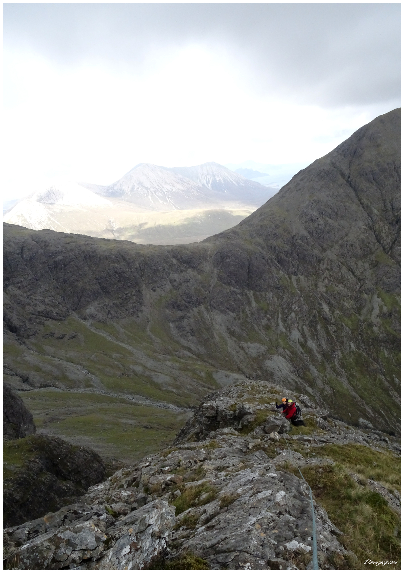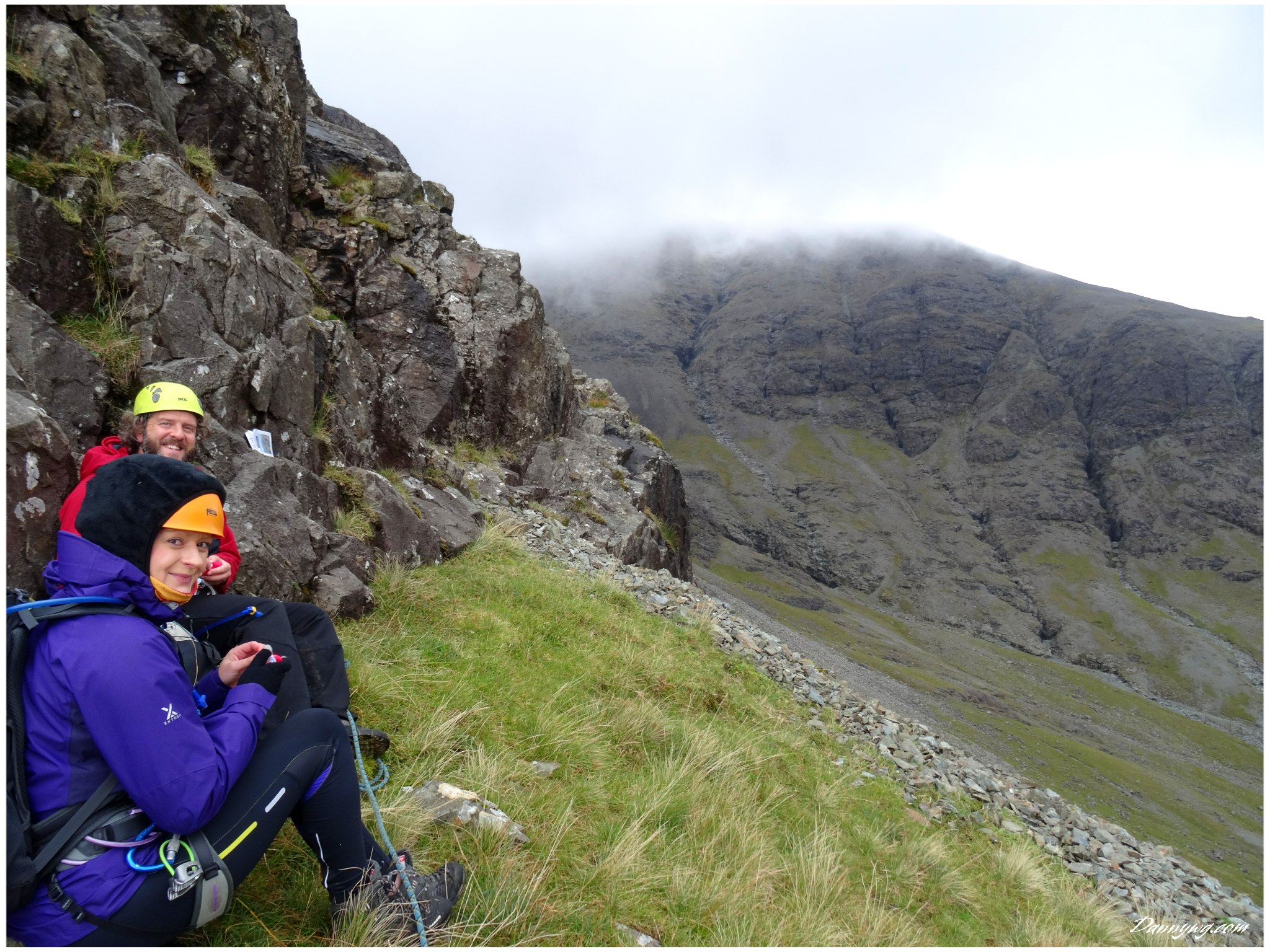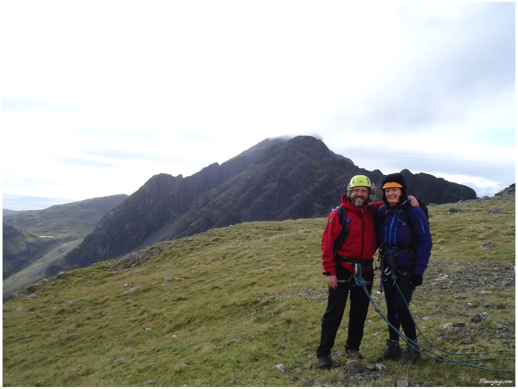 Gemma and Christian were heading up to Skye for Gemma’s birthday for a week. They both do a lot of caving, some indoor climbing and have been climbing outside with friends. They had heard of the amazing mountains and awesome scrambling Skye has to offer but needed some one to guide them and keep them safe, so I was hired for two days :-). Both Gemma and Christian were open with their fear of heights and I spent some time disusing this and what I was able to do to help. I planned the first route of the first day, one to see for my self how they were and two to gently introduce them to Skye. They both did far better than they expected so we managed to squeeze a second route in on the first day and did a massive 600m grade 2/3 ** scramble on the second day. One quote from Christian ‘You managed to scare me just the right amount!’