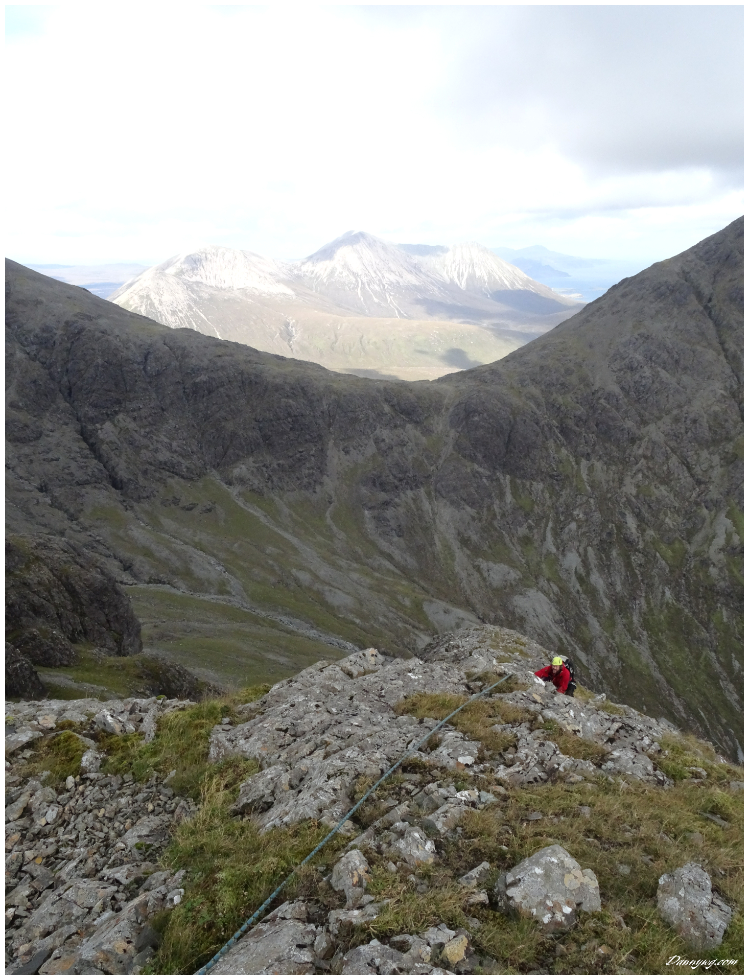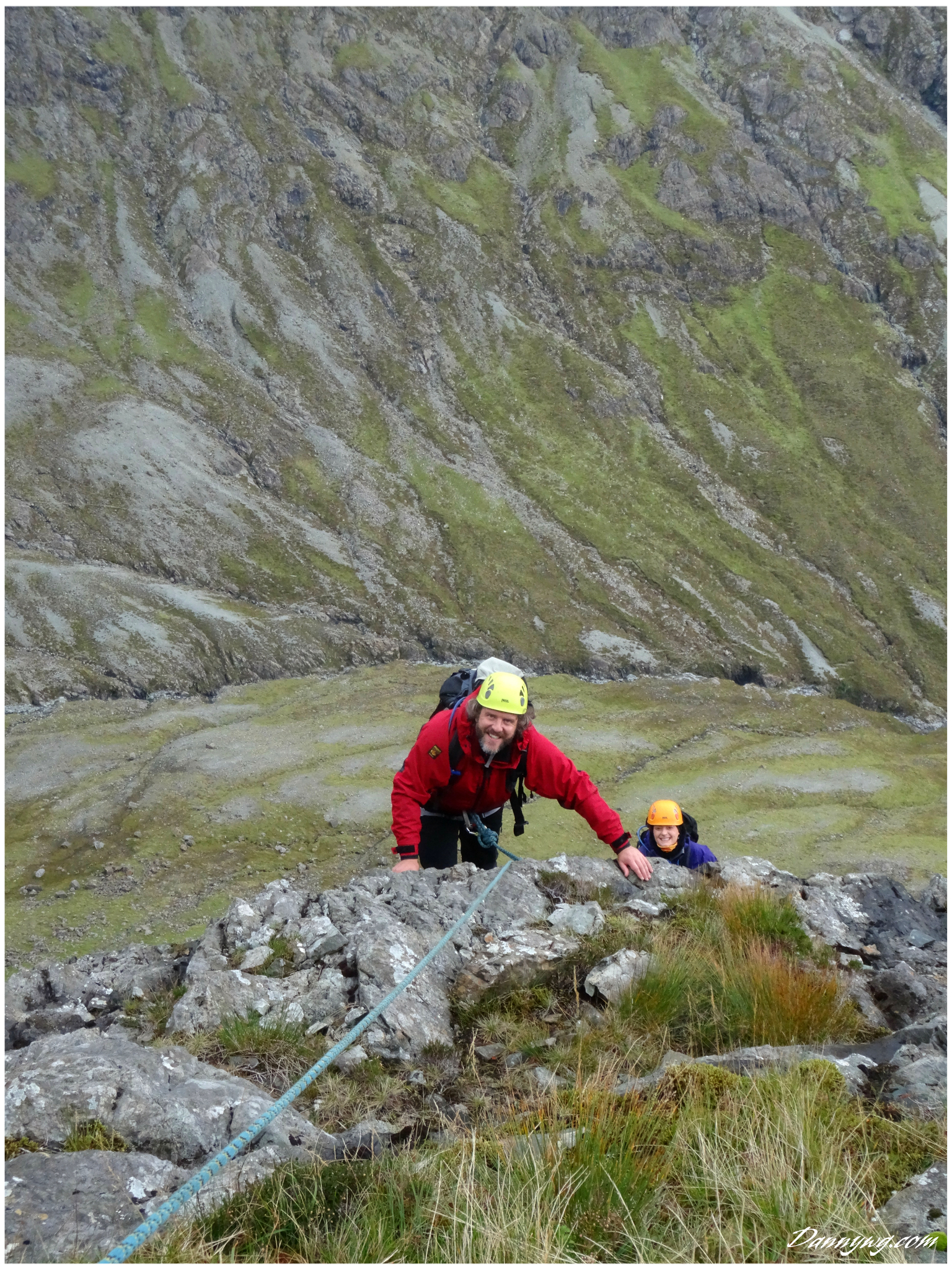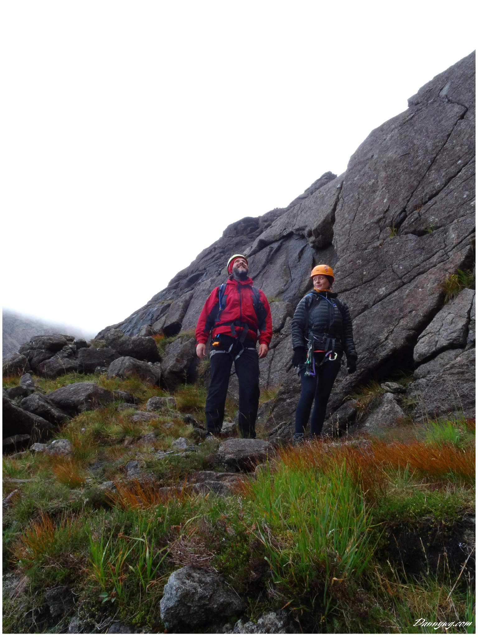 Gemma and Christian were heading up to Skye for Gemma’s birthday for a week. They both do a lot of caving, some indoor climbing and have been climbing outside with friends. They had heard of the amazing mountains and awesome scrambling Skye has to offer but needed some one to guide them and keep them safe, so I was hired for two days :-). Both Gemma and Christian were open with their fear of heights and I spent some time disusing this and what I was able to do to help. I planned the first route of the first day, one to see for my self how they were and two to gently introduce them to Skye. They both did far better than they expected so we managed to squeeze a second route in on the first day and did a massive 600m grade 2/3 ** scramble on the second day. One quote from Christian ‘You managed to scare me just the right amount!’
