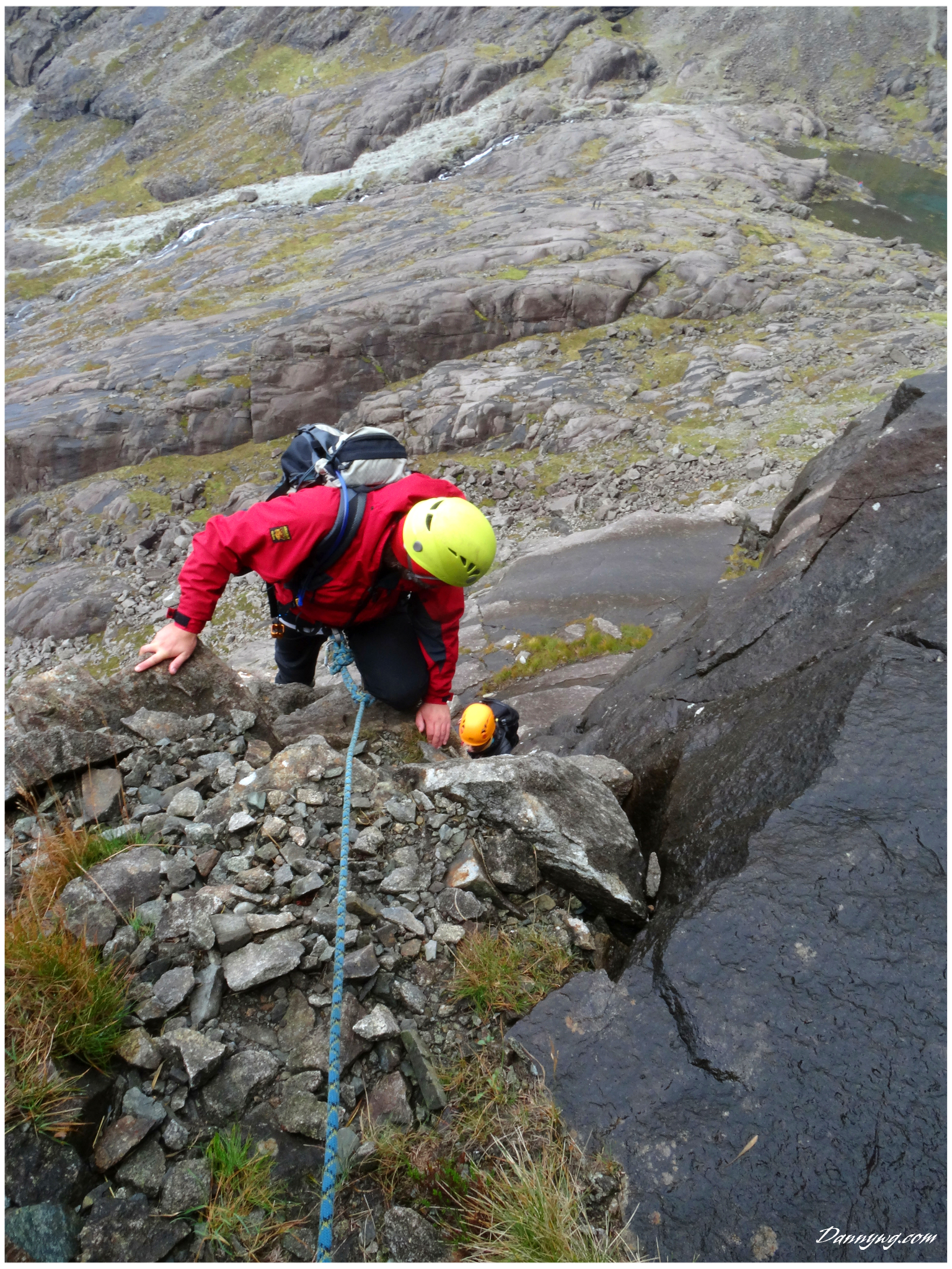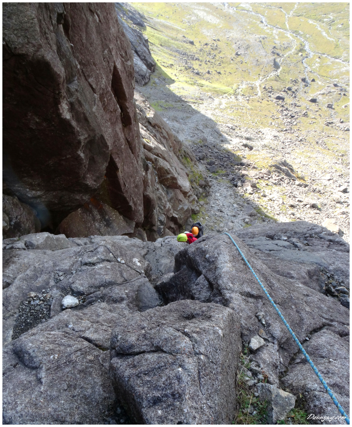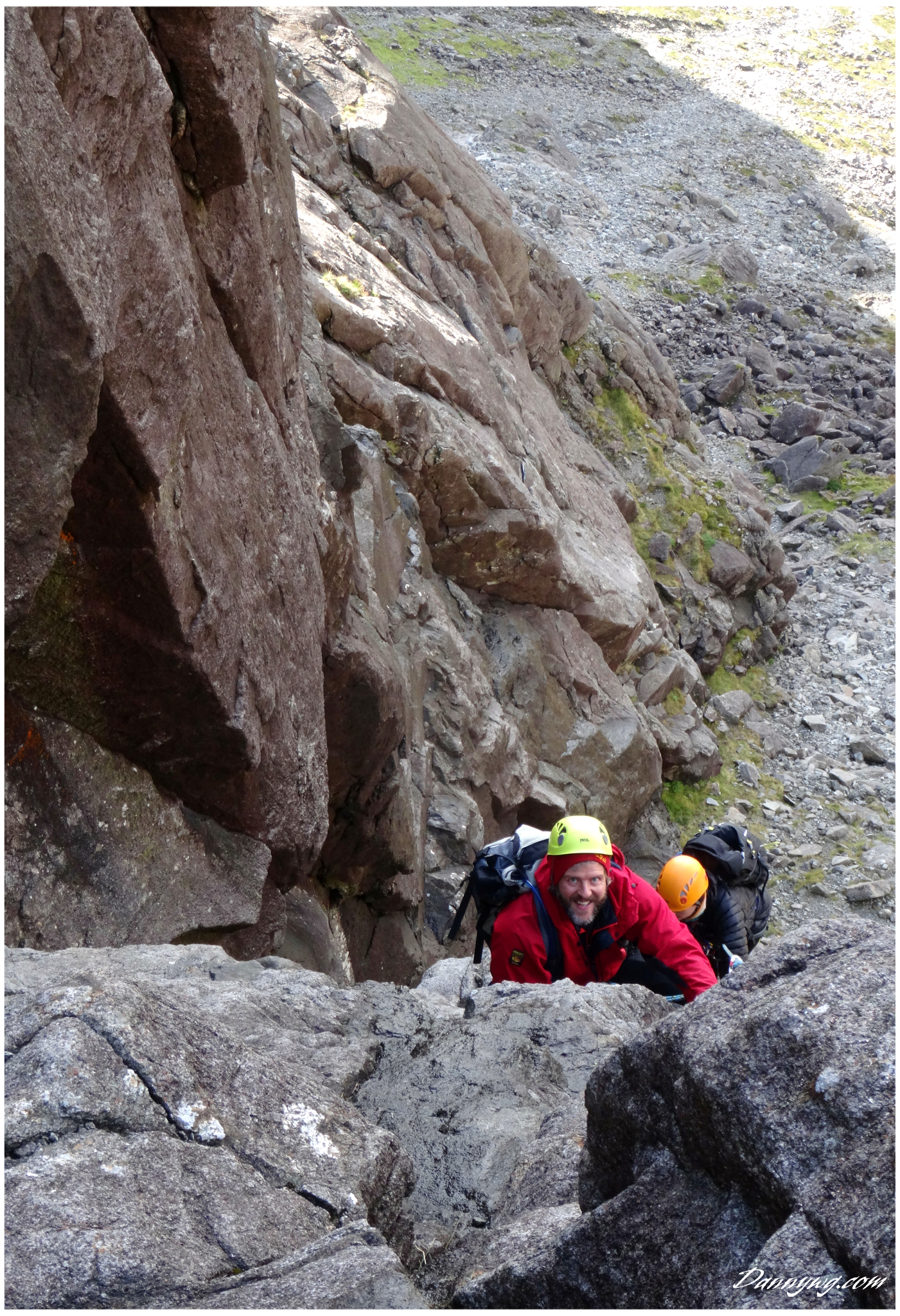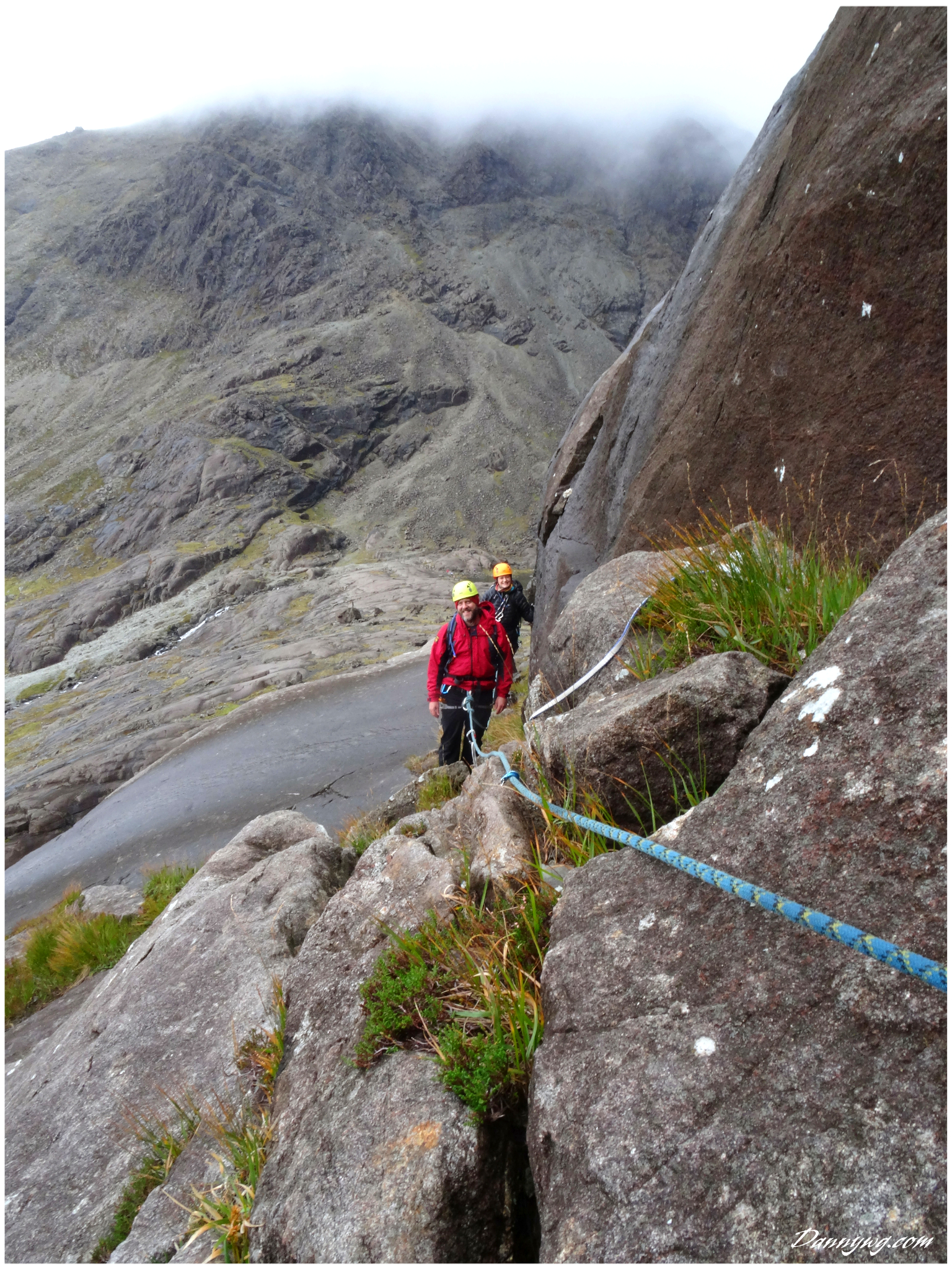 Gemma and Christian were heading up to Skye for Gemma’s birthday for a week. They both do a lot of caving, some indoor climbing and have been climbing outside with friends. They had heard of the amazing mountains and awesome scrambling Skye has to offer but needed some one to guide them and keep them safe, so I was hired for two days :-). Both Gemma and Christian were open with their fear of heights and I spent some time disusing this and what I was able to do to help. I planned the first route of the first day, one to see for my self how they were and two to gently introduce them to Skye. They both did far better than they expected so we managed to squeeze a second route in on the first day and did a massive 600m grade 2/3 ** scramble on the second day. One quote from Christian ‘You managed to scare me just the right amount!’