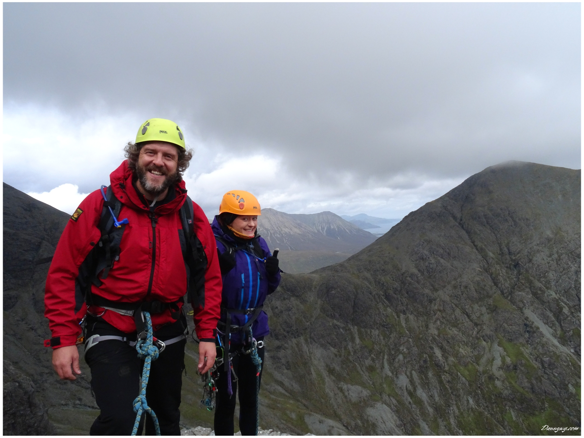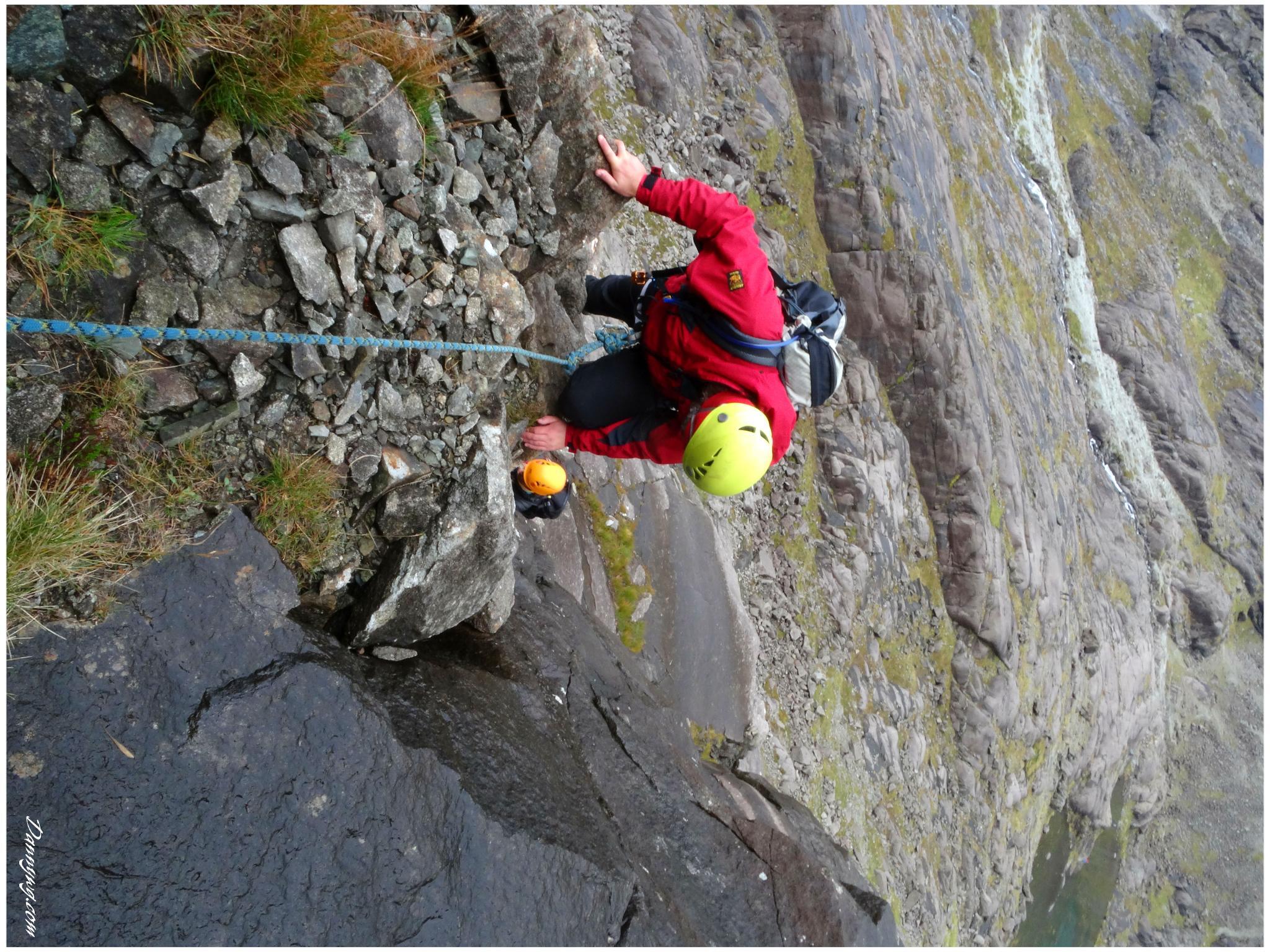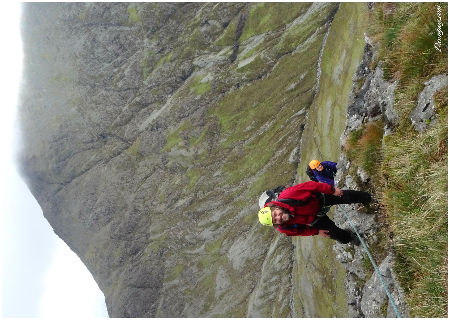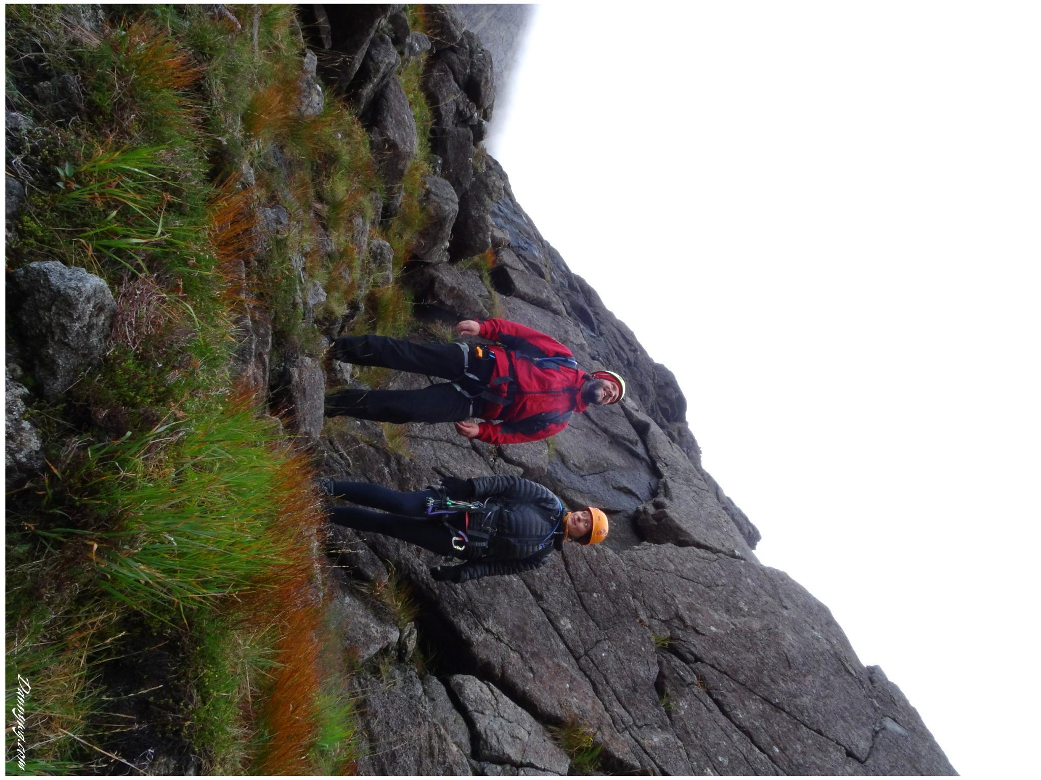 Gemma and Christian were heading up to Skye for Gemma’s birthday for a week. They both do a lot of caving, some indoor climbing and have been climbing outside with friends. They had heard of the amazing mountains and awesome scrambling Skye has to offer but needed some one to guide them and keep them safe, so I was hired for two days :-). Both Gemma and Christian were open with their fear of heights and I spent some time disusing this and what I was able to do to help. I planned the first route of the first day, one to see for my self how they were and two to gently introduce them to Skye. They both did far better than they expected so we managed to squeeze a second route in on the first day and did a massive 600m grade 2/3 ** scramble on the second day. One quote from Christian ‘You managed to scare me just the right amount!’