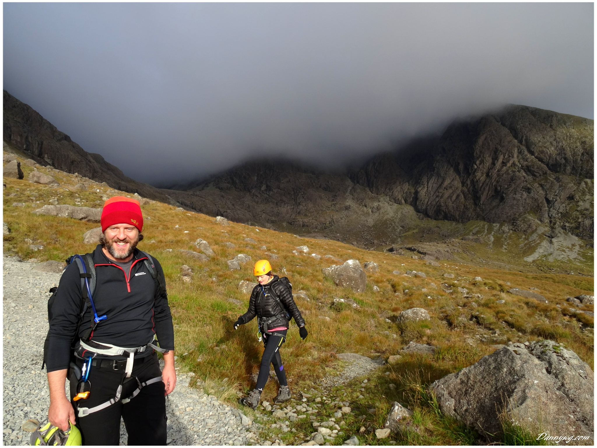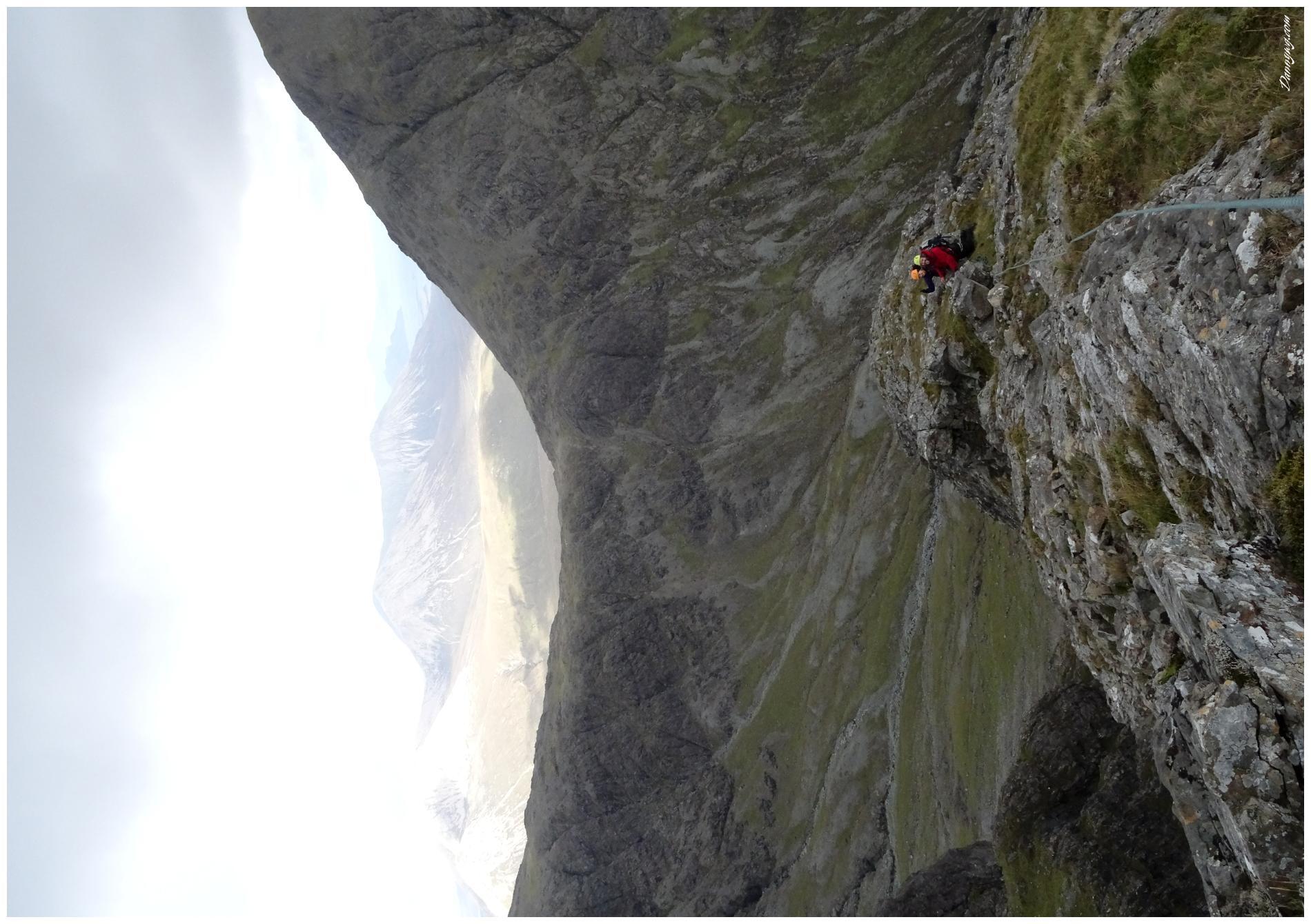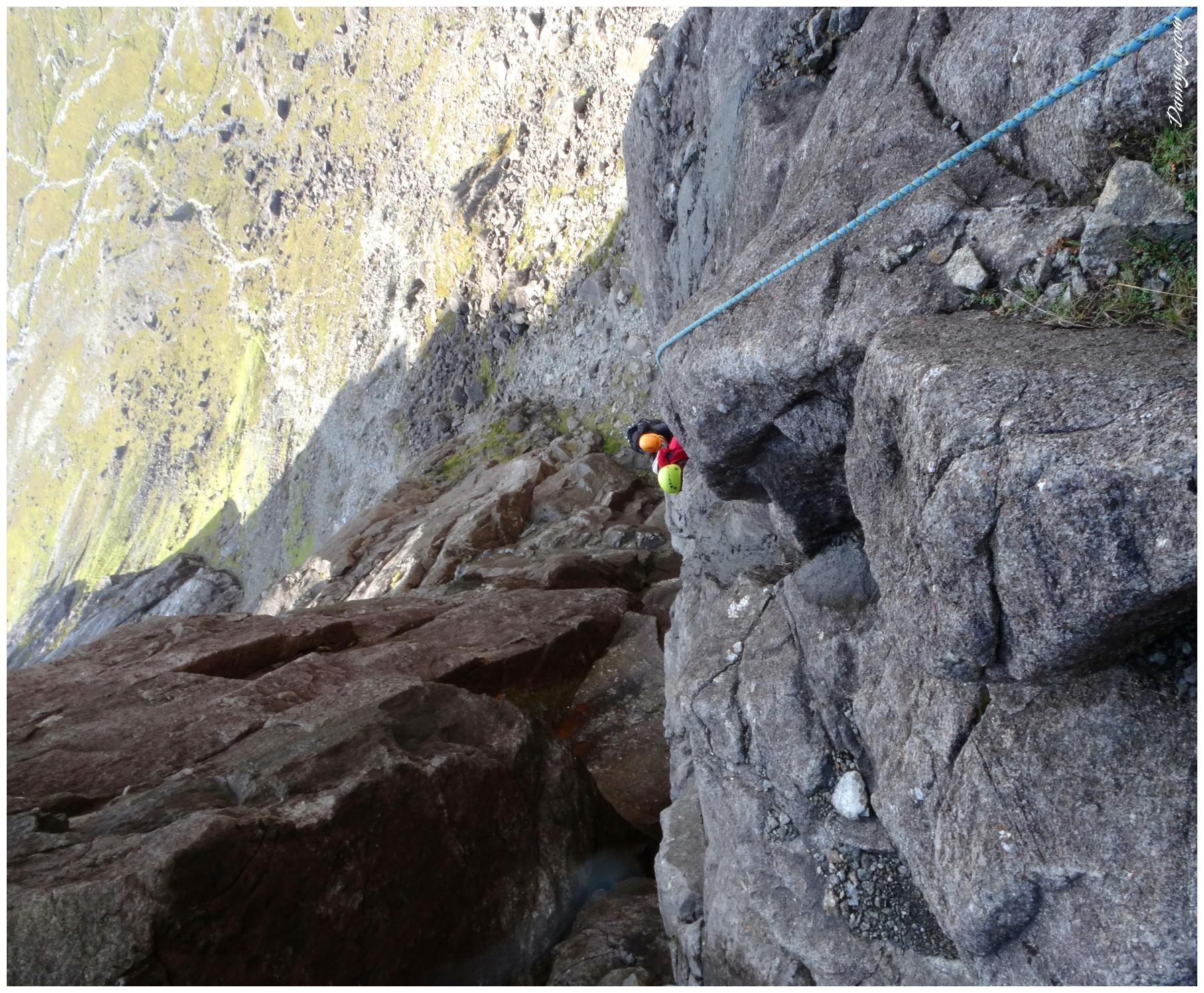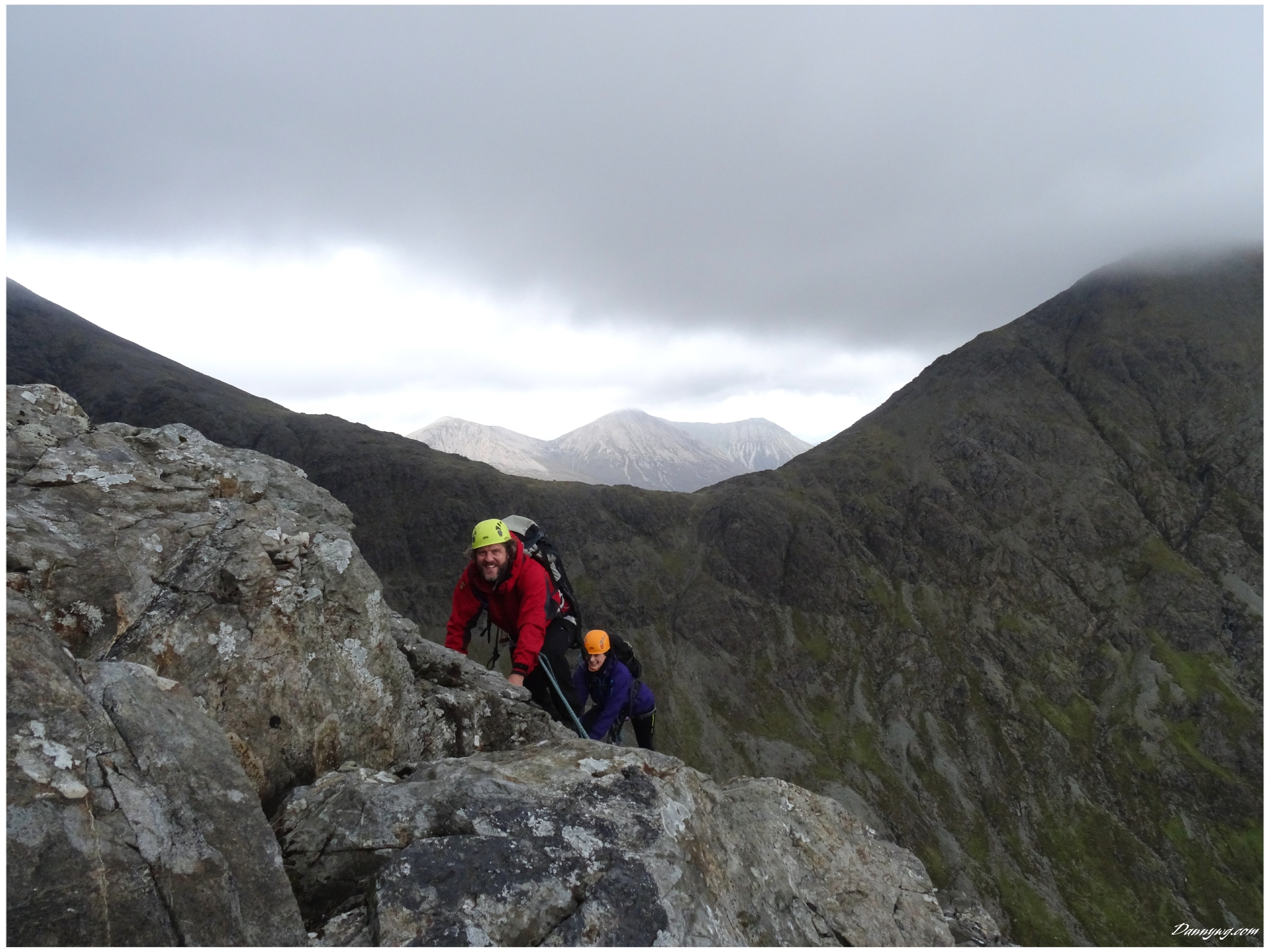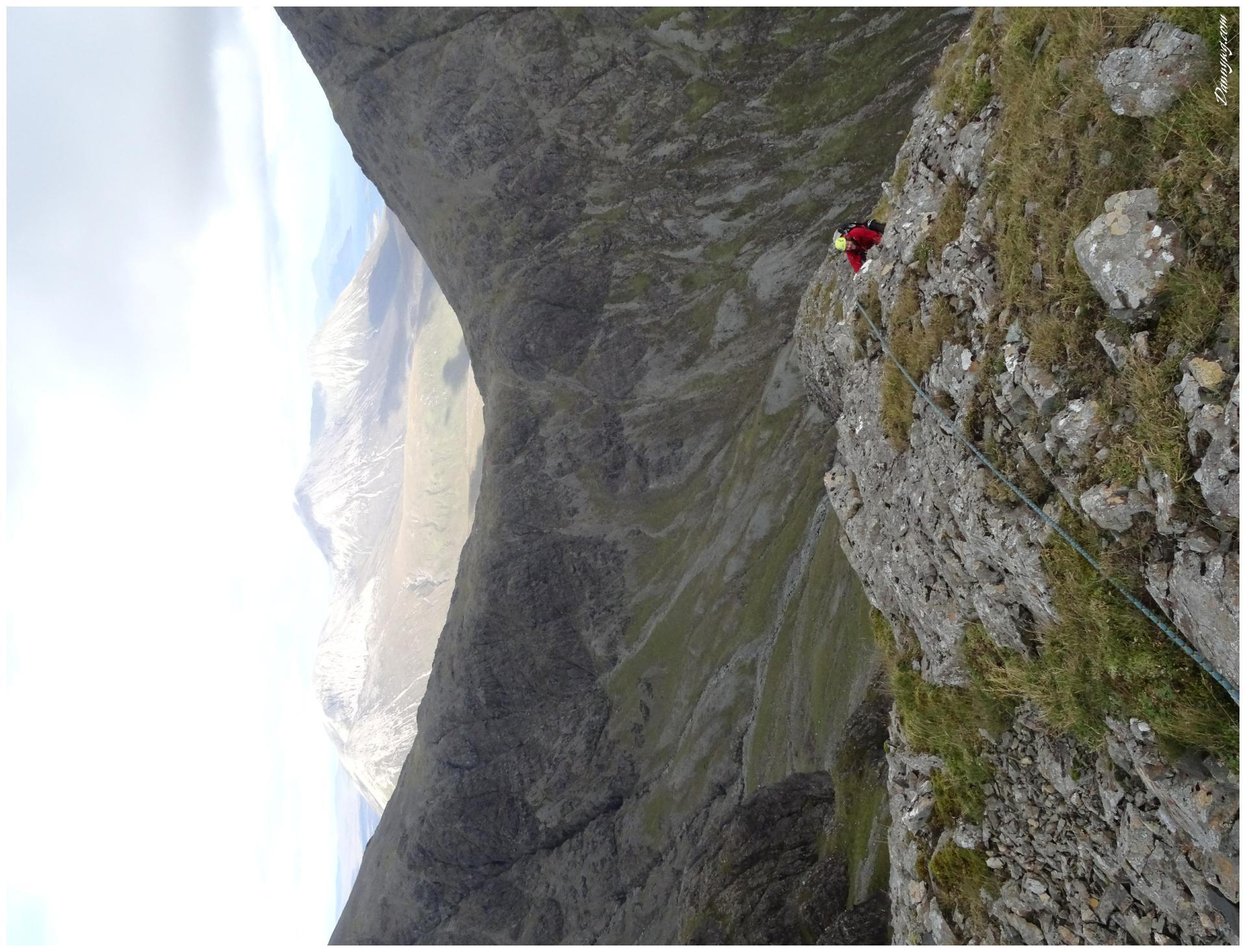 Gemma and Christian were heading up to Skye for Gemma’s birthday for a week. They both do a lot of caving, some indoor climbing and have been climbing outside with friends. They had heard of the amazing mountains and awesome scrambling Skye has to offer but needed some one to guide them and keep them safe, so I was hired for two days :-). Both Gemma and Christian were open with their fear of heights and I spent some time disusing this and what I was able to do to help. I planned the first route of the first day, one to see for my self how they were and two to gently introduce them to Skye. They both did far better than they expected so we managed to squeeze a second route in on the first day and did a massive 600m grade 2/3 ** scramble on the second day. One quote from Christian ‘You managed to scare me just the right amount!’