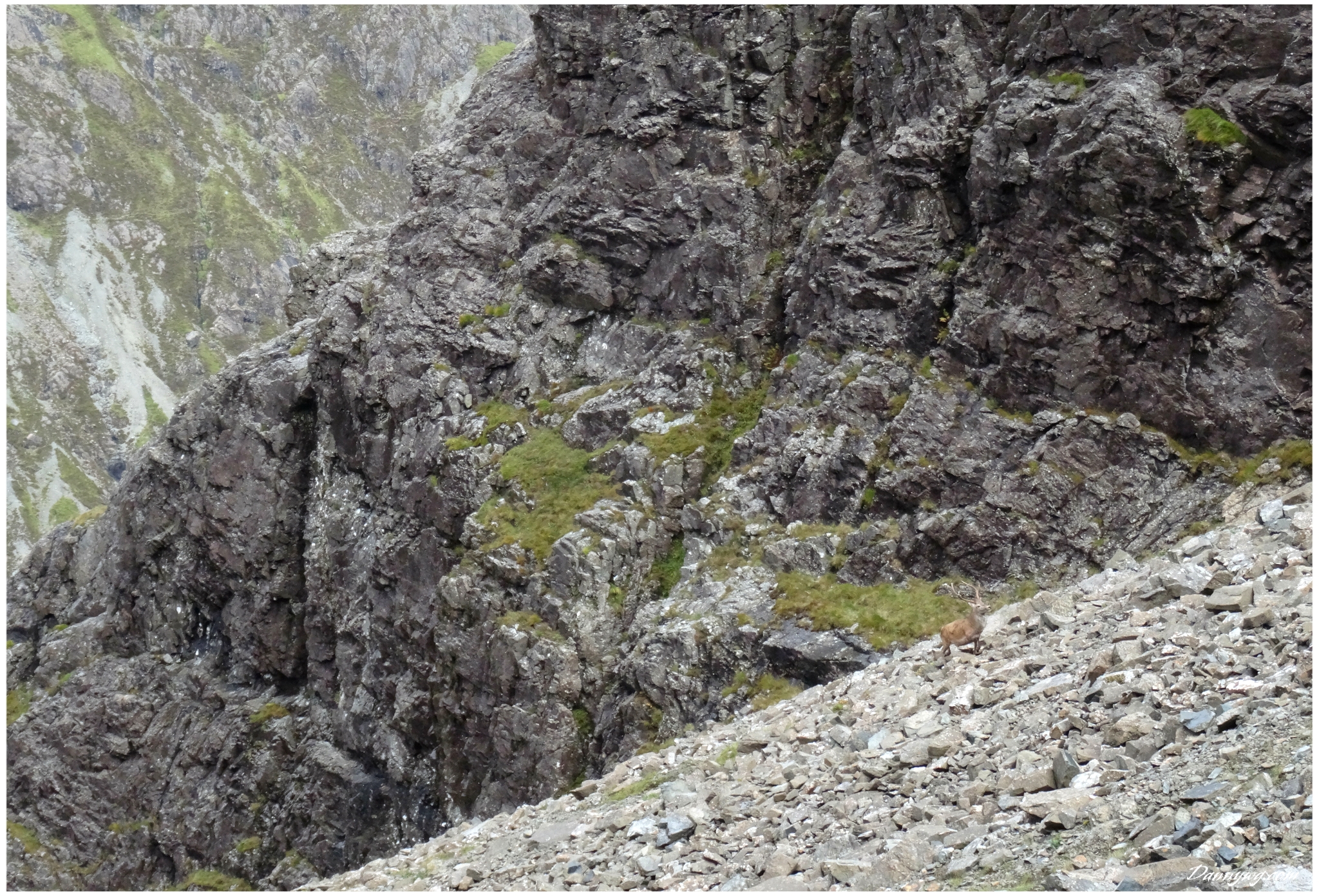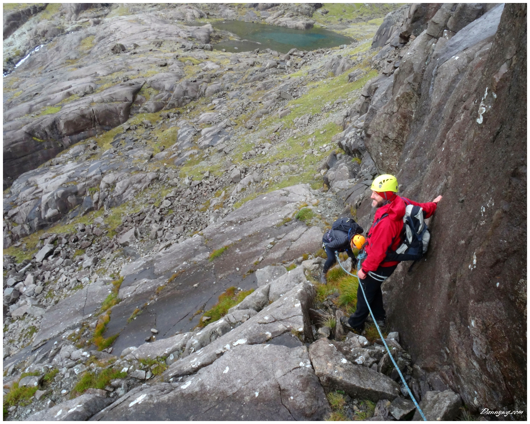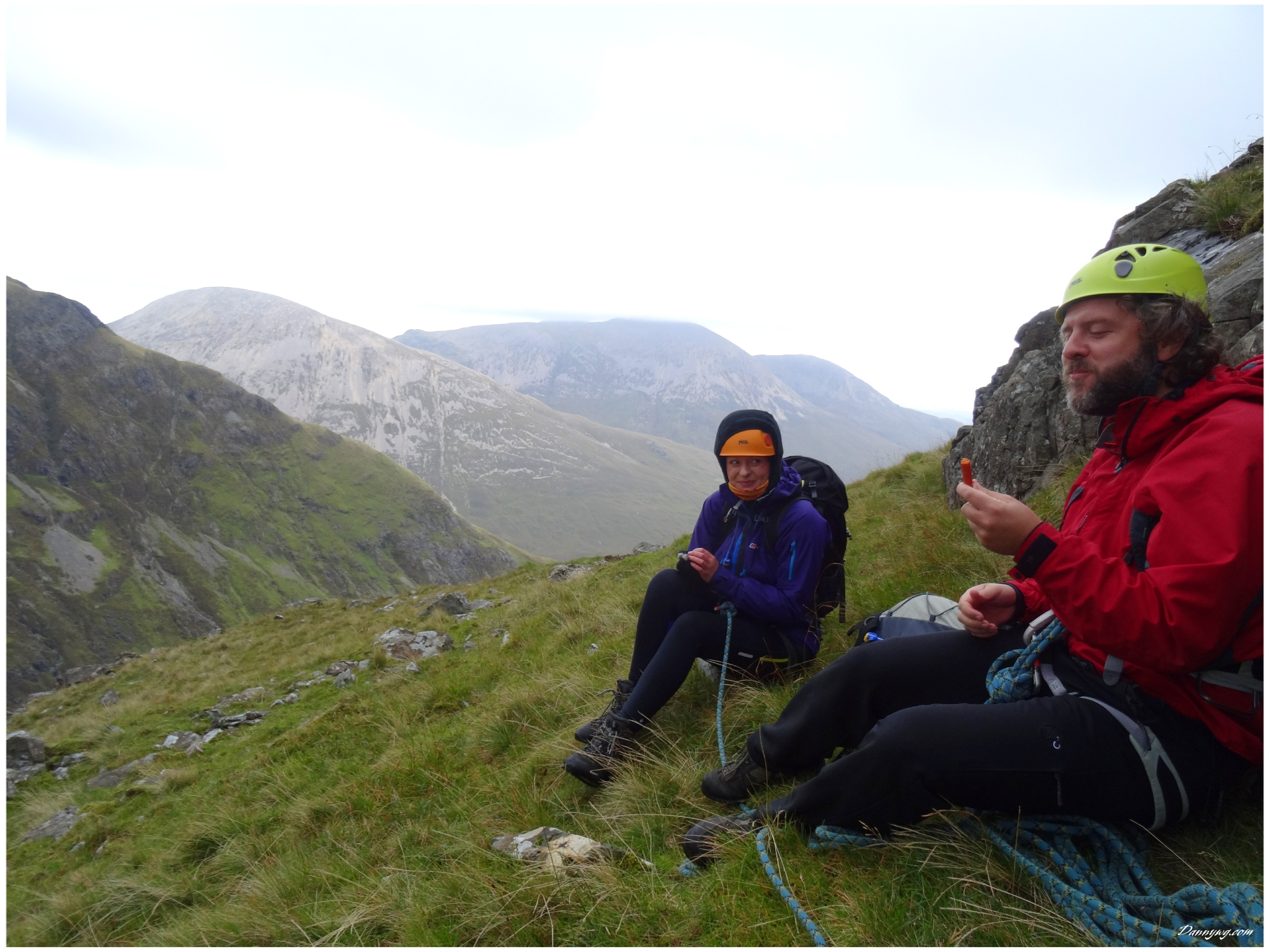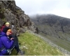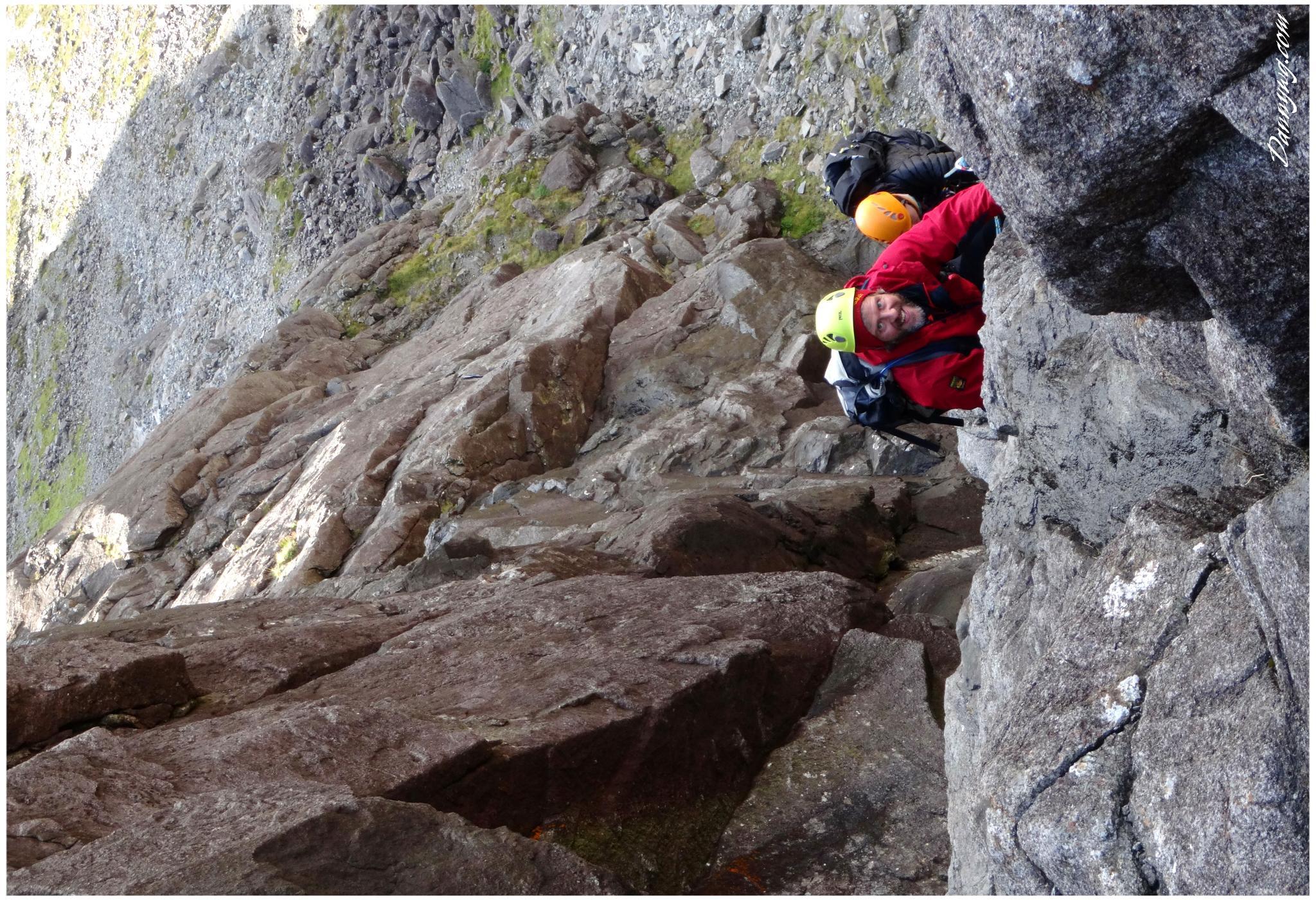 Gemma and Christian were heading up to Skye for Gemma’s birthday for a week. They both do a lot of caving, some indoor climbing and have been climbing outside with friends. They had heard of the amazing mountains and awesome scrambling Skye has to offer but needed some one to guide them and keep them safe, so I was hired for two days :-). Both Gemma and Christian were open with their fear of heights and I spent some time disusing this and what I was able to do to help. I planned the first route of the first day, one to see for my self how they were and two to gently introduce them to Skye. They both did far better than they expected so we managed to squeeze a second route in on the first day and did a massive 600m grade 2/3 ** scramble on the second day. One quote from Christian ‘You managed to scare me just the right amount!’