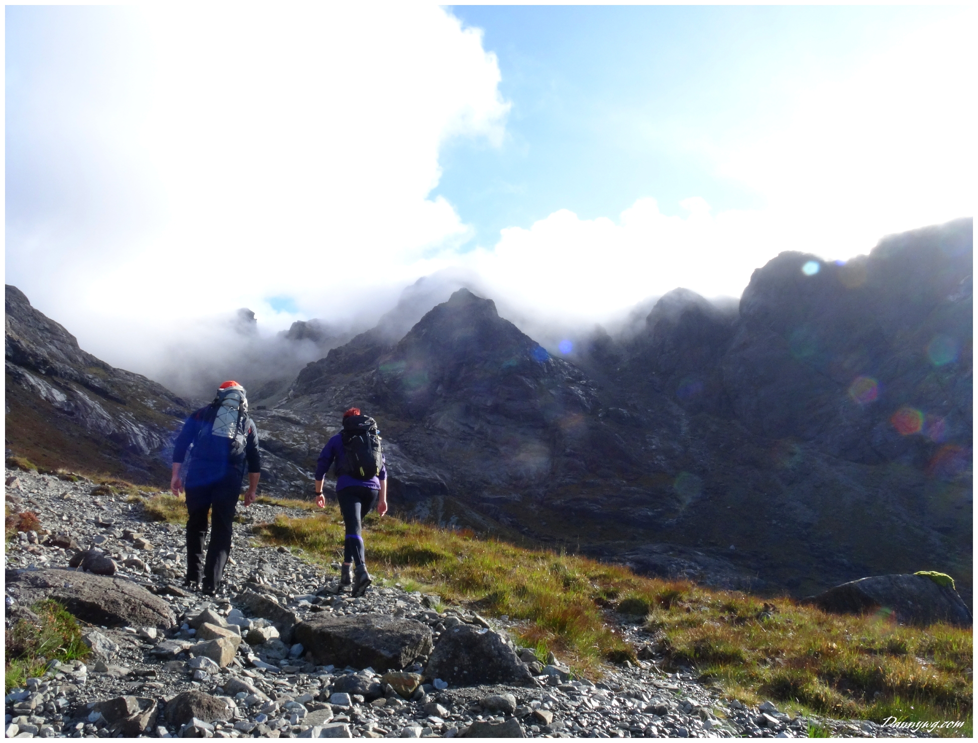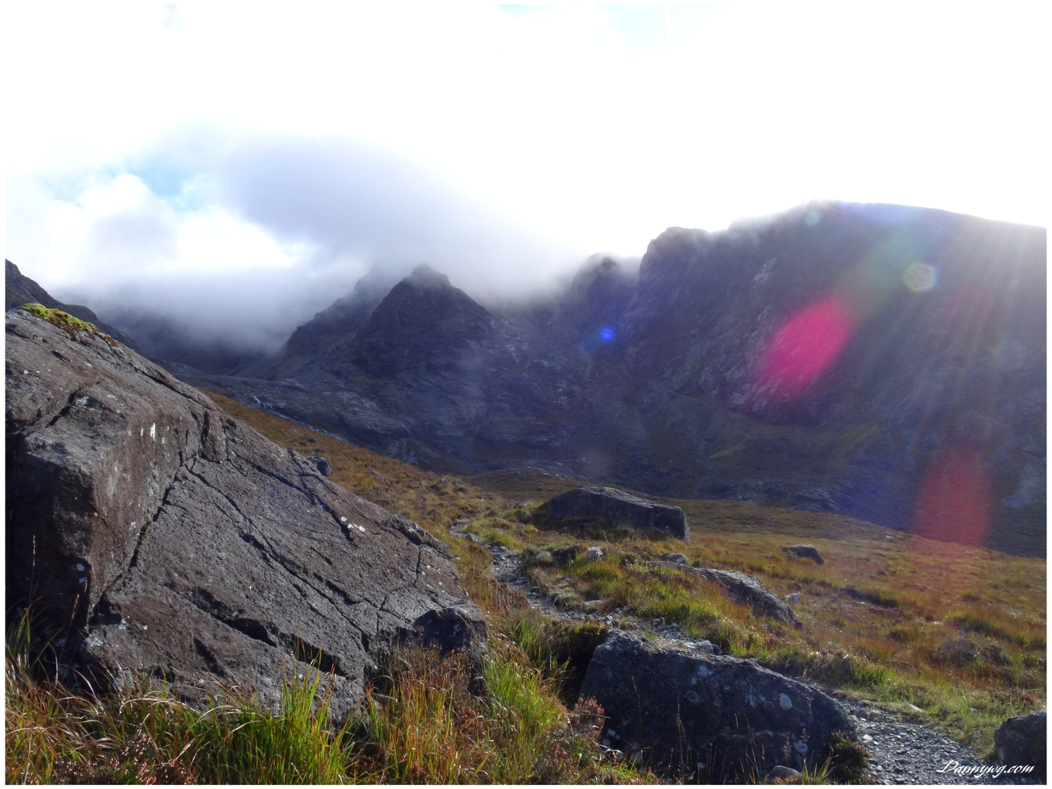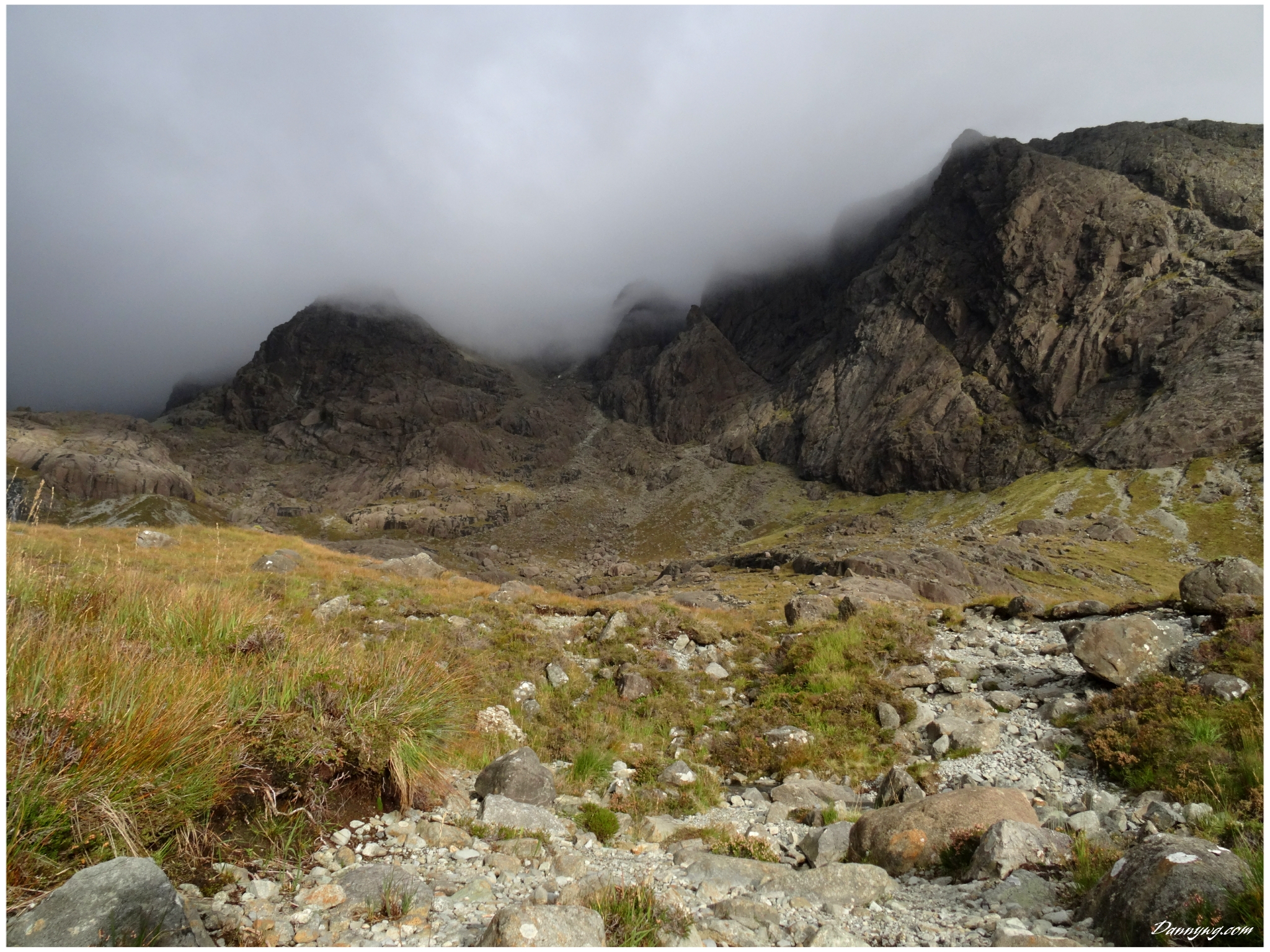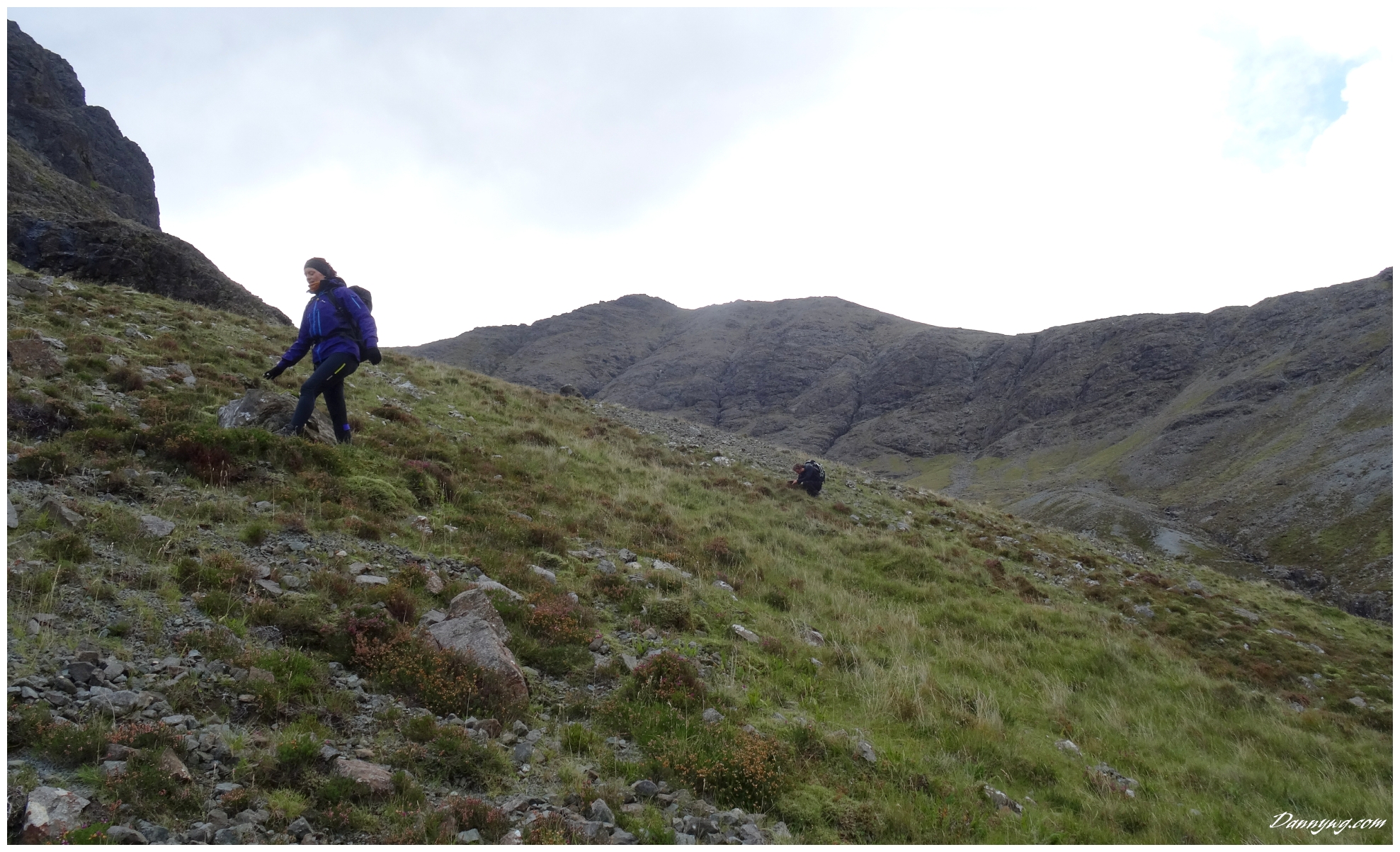 Gemma and Christian were heading up to Skye for Gemma’s birthday for a week. They both do a lot of caving, some indoor climbing and have been climbing outside with friends. They had heard of the amazing mountains and awesome scrambling Skye has to offer but needed some one to guide them and keep them safe, so I was hired for two days :-). Both Gemma and Christian were open with their fear of heights and I spent some time disusing this and what I was able to do to help. I planned the first route of the first day, one to see for my self how they were and two to gently introduce them to Skye. They both did far better than they expected so we managed to squeeze a second route in on the first day and did a massive 600m grade 2/3 ** scramble on the second day. One quote from Christian ‘You managed to scare me just the right amount!’