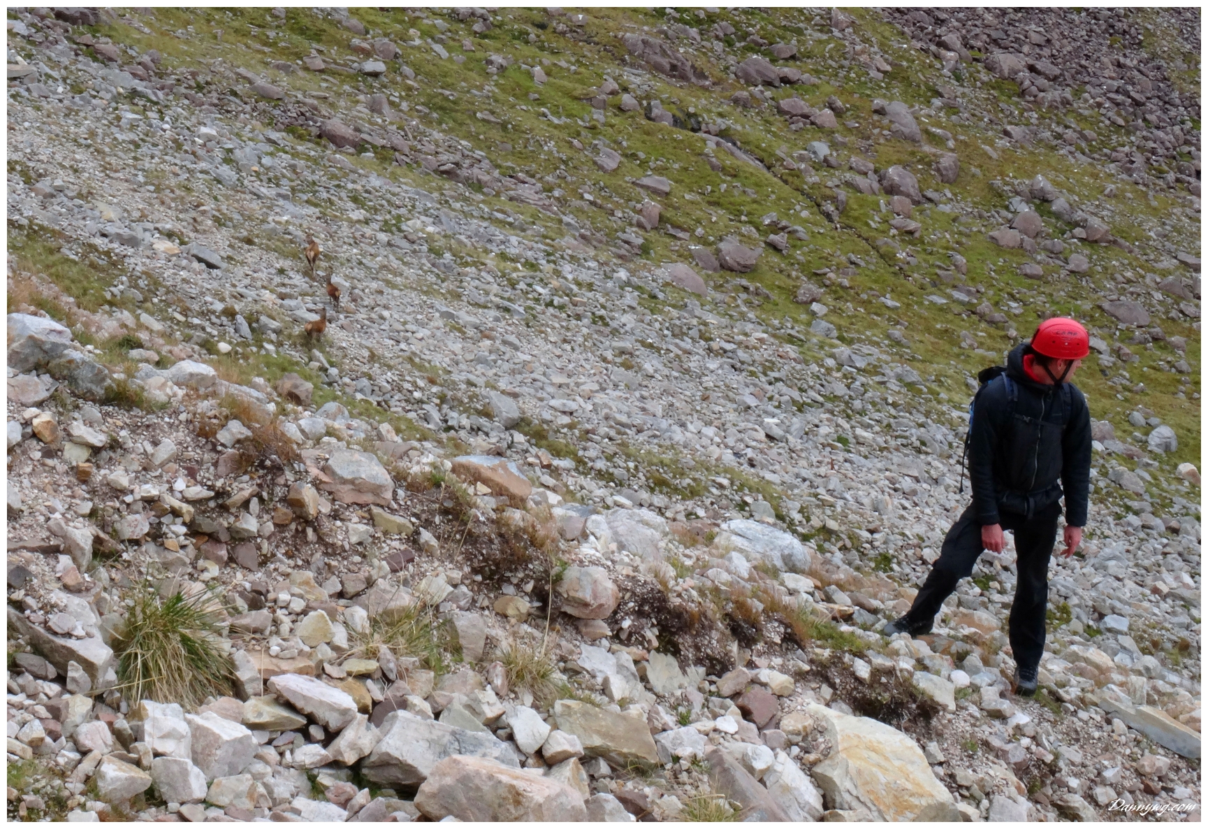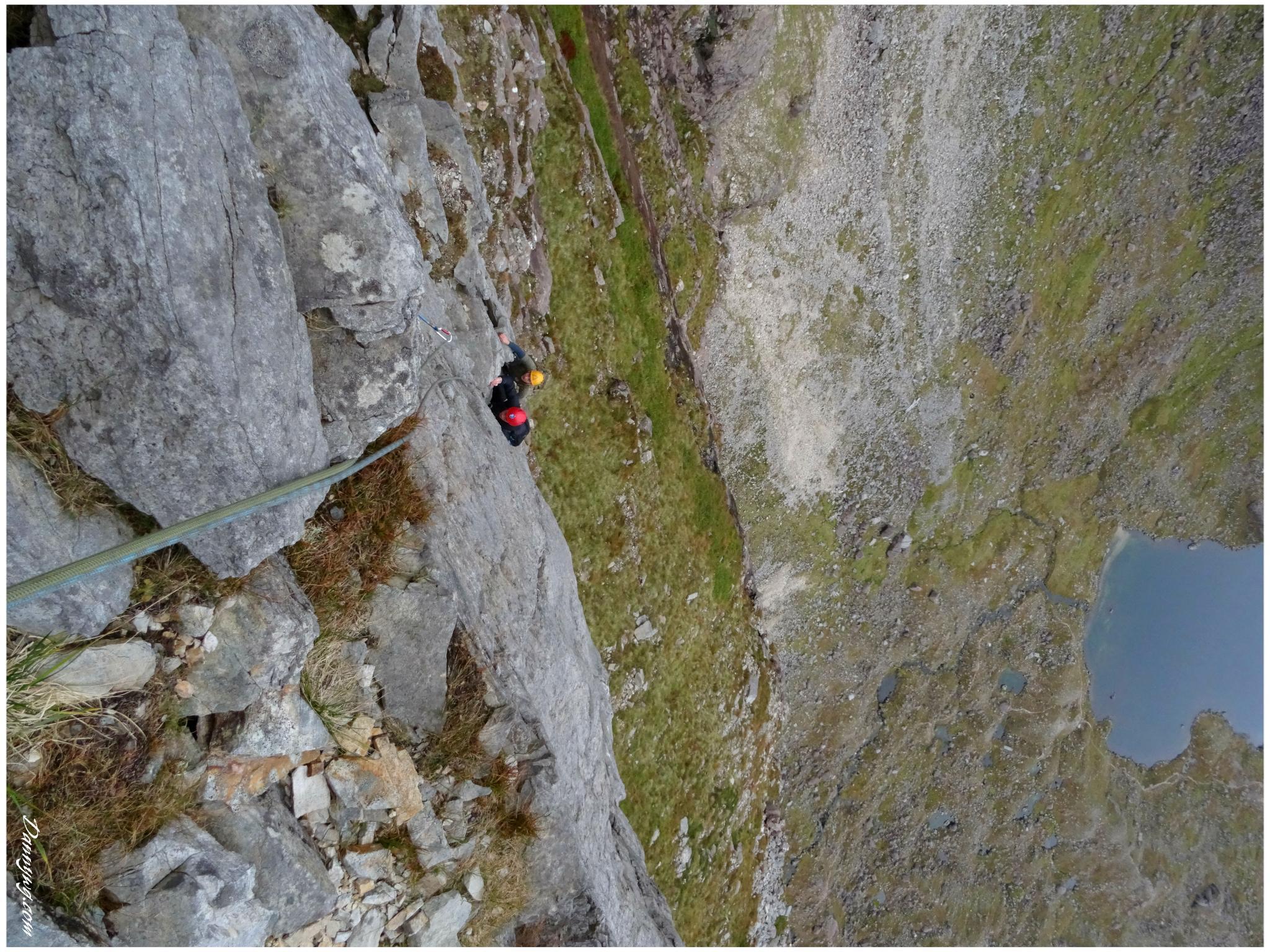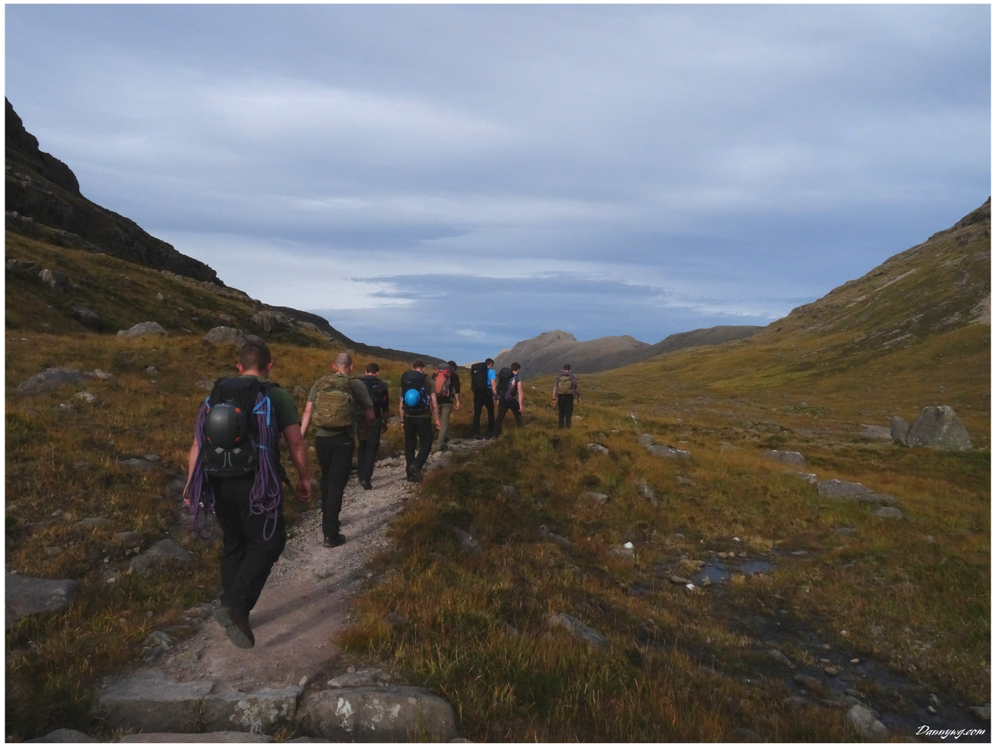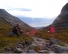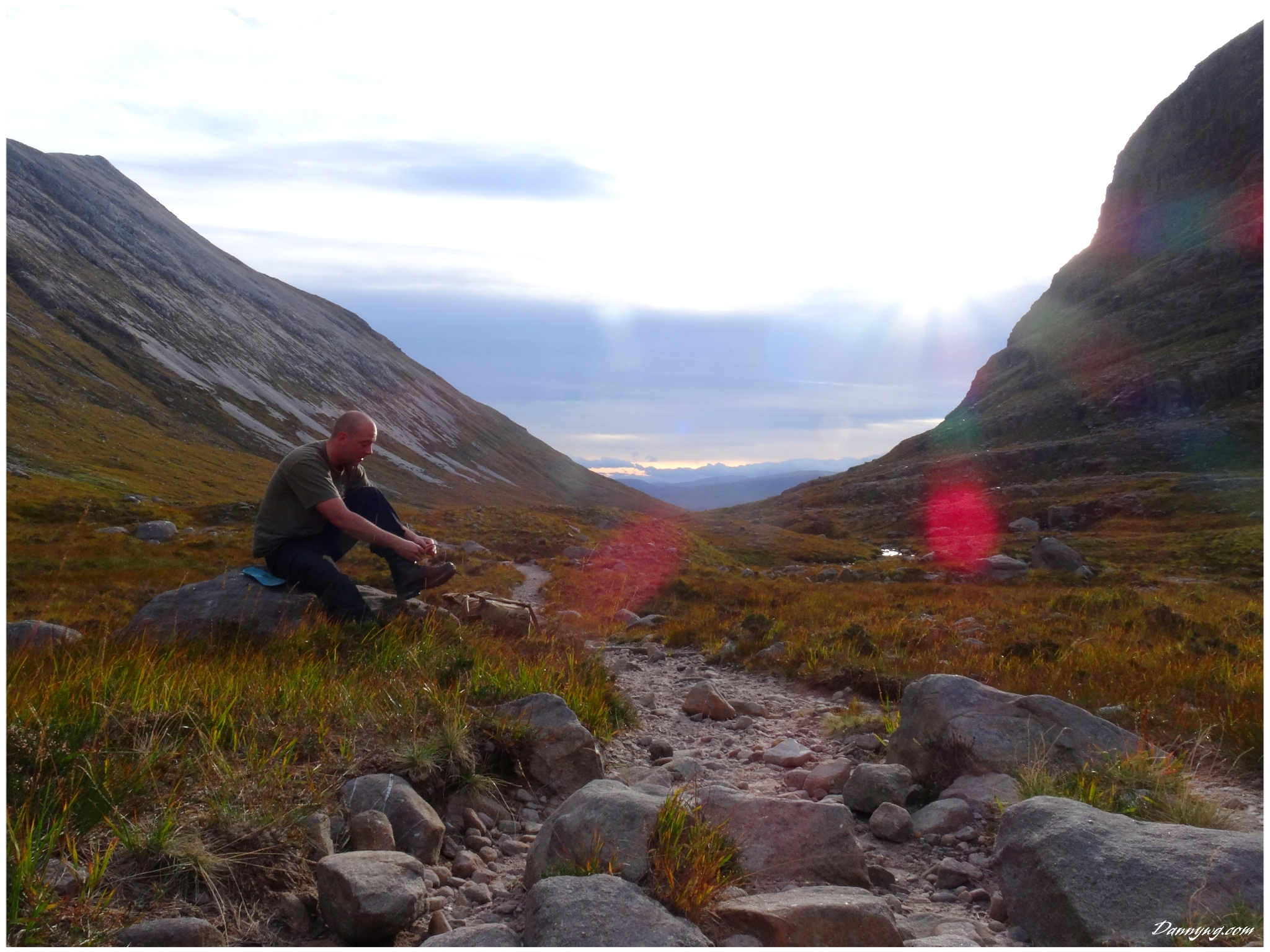 After completing a 5 day intro to climbing course I was hired by the group to lead a guided climbing trip up the ‘Triple Buttresses’ of Ben Eighe in Torridon. I guided two of the group, Garry and Scotty, up Hamilton’s Route 280 m, the first third being on Sand Stone and the last two thirds on Quartzite. It’s a real mountain route with 2 hours walk in and some very loose blocks (easily avoided). We managed to time it so we saw the sun set just as we topped out, epic!. Then it was a walk back to the van with head touches.
